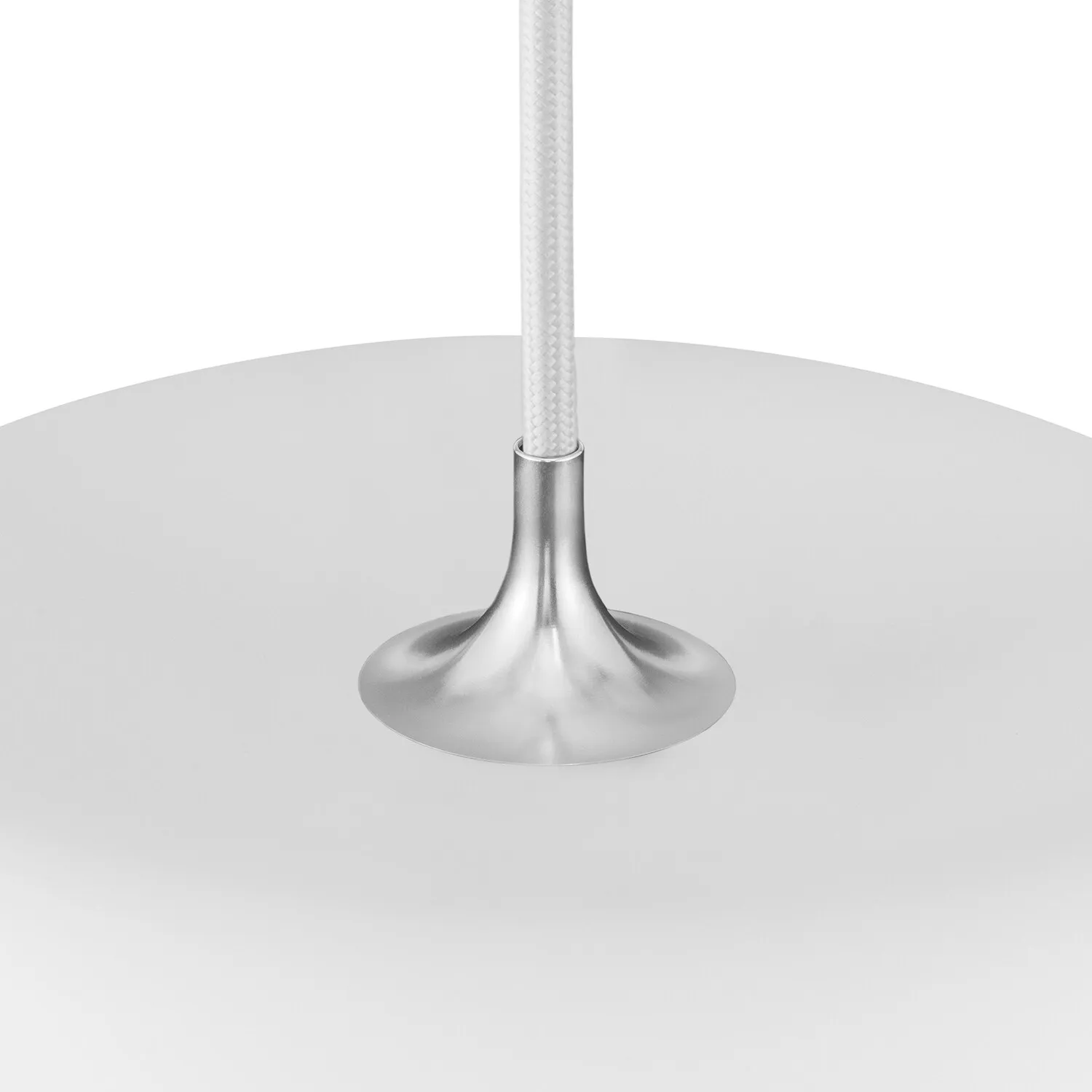 Pendant by Normann Nordic with a minimalistic, sleek design language and a subtle expression that blends harmoniously into the setting. It has a lacquered shade in aluminium with a fabric cord in the same colour.