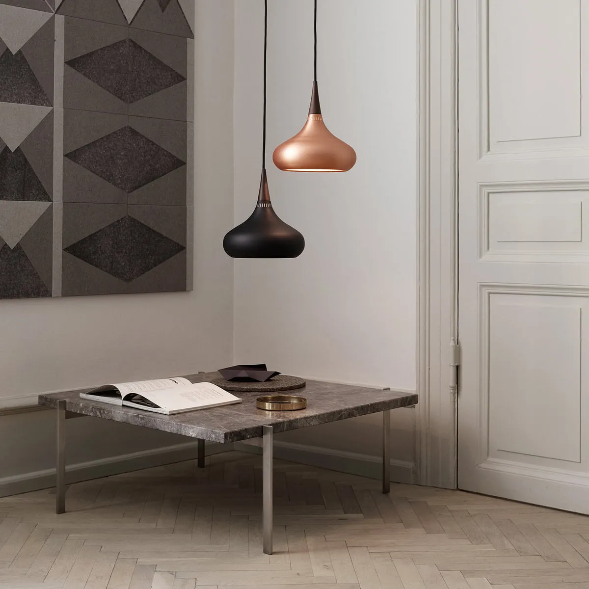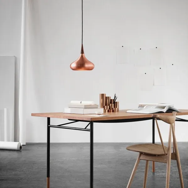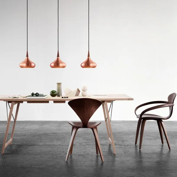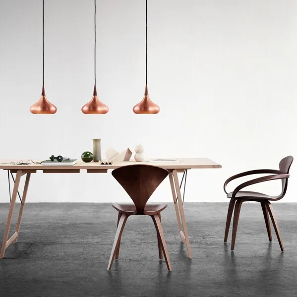 De Arabesque P1 hanglamp is een onberispelijk lichtontwerp met een goede lichtopbrengst. De organische uitdrukkingswijze verbindt prachtig de diepe, levendige koperen gloed met het palissander bovenblad. Lichtbron: E27 max 60W. Textielsnoer van 6 m. Alleen EU versie (220V) beschikbaar