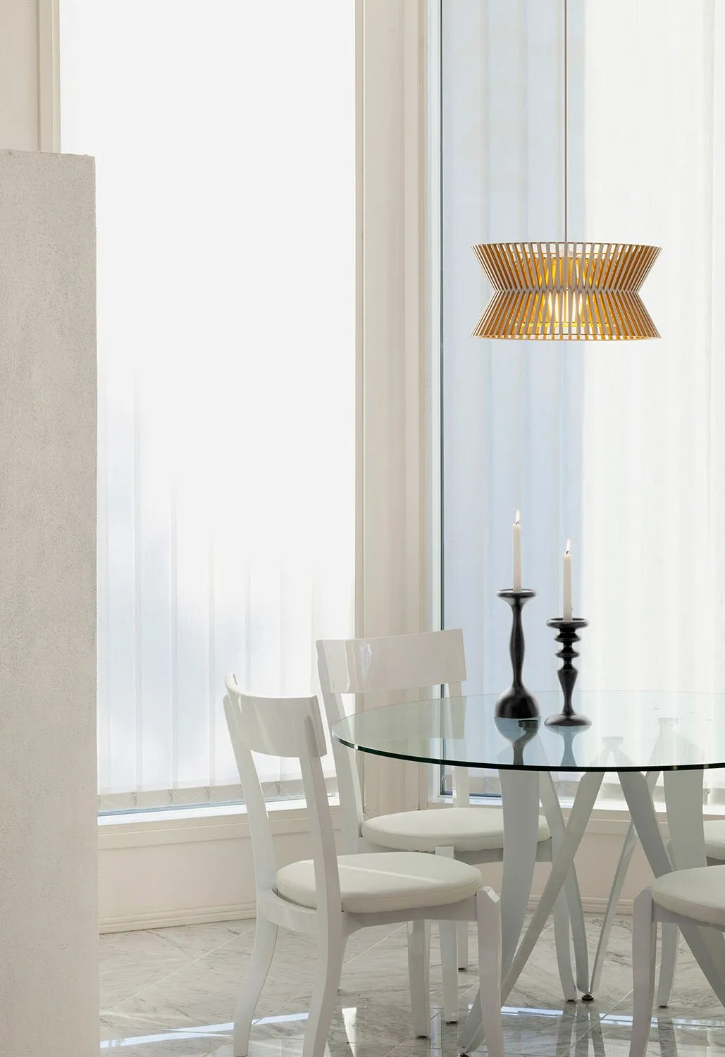 Effectieve plafondlamp in elegant ontwerp, handgemaakt van voorgevormde berkenhouten schijfjes in Finland. Het hout geeft die aangename uitdrukking en heerlijke sfeer. Inclusief 150 cm textielkabel.
