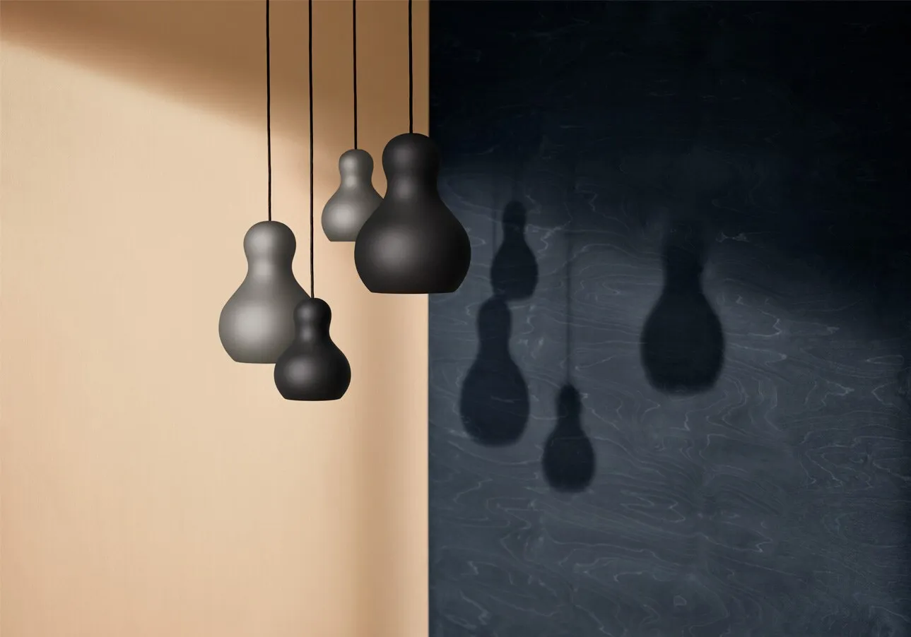 Pera P2 Pendant lamp from Dellinger is a beautiful and soft lamp with a lovely light. Its shape is a sculpture in itself and it is beautiful even when not turned on. Hang them in a group Ascend a coffee table or just one in a smaller hallway. The colours Meteor Black / Gray have more texture in their finish than the others. Available in several designs.