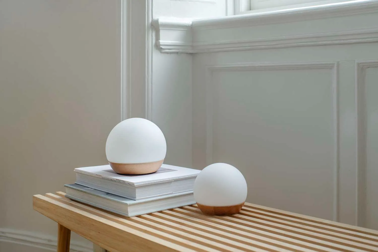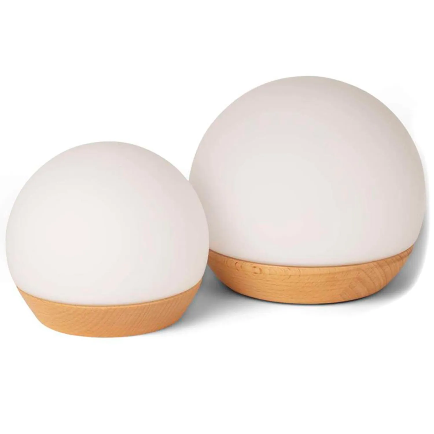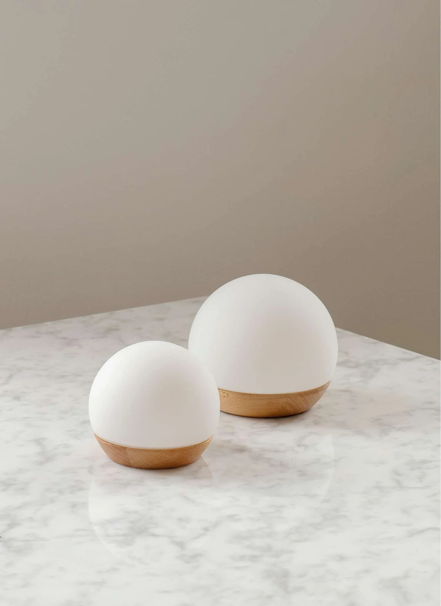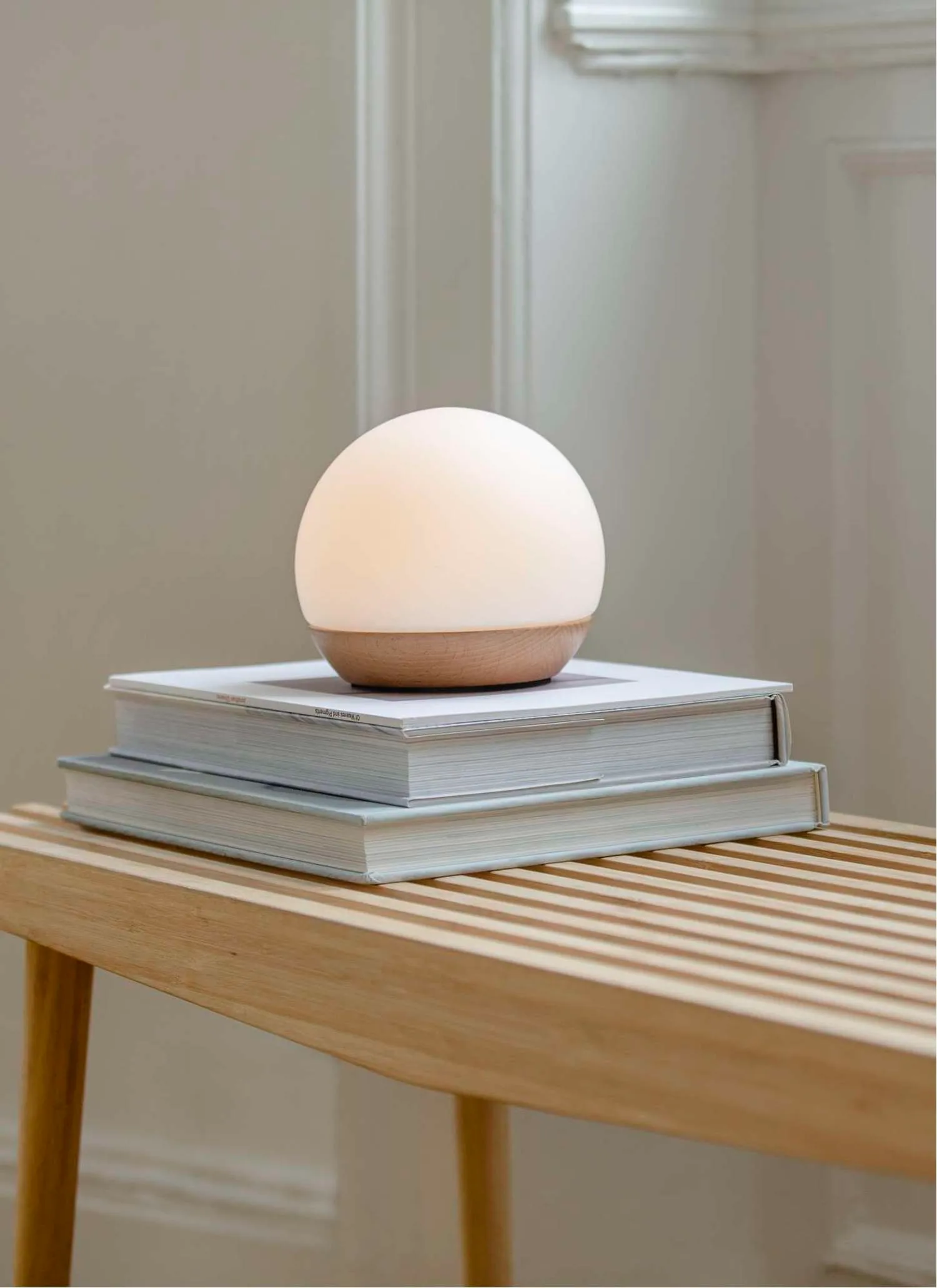 The table lamp by Spring Nordic has a matte bowl in mouth Breath glass with a base in beech. It has a portable, rechargeable design with an adjustable, warm white light perfect for creating a cosy atmosphere in any room.