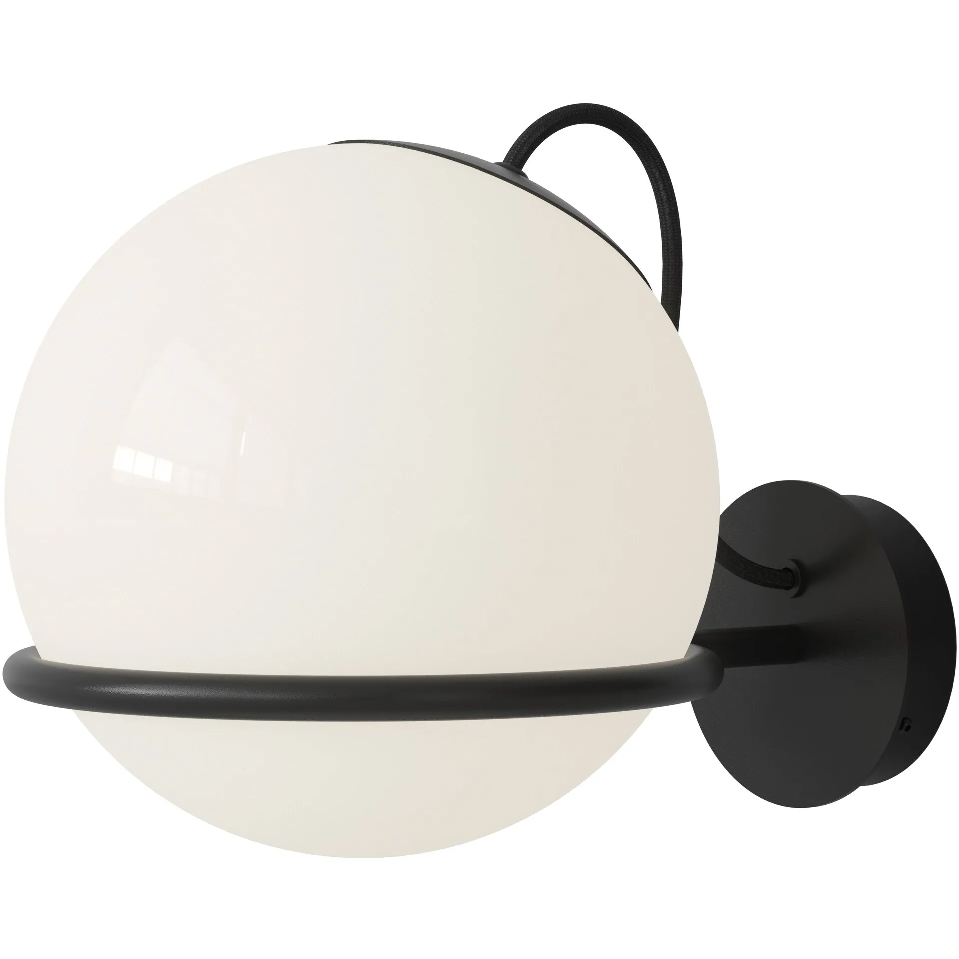 Wall lamp by Atla. This wall lamp from Atla, is an exceptional Inspira of functional design and modern elegance. Crafted with a sublime opaline glass sphere nestled in a meticulously cut steel ring, this lamp is perfect for those with an eye for minimalist design and versatility. Whether hung with the sphere facing upward for a soothing indirect ambience or downward for a focused, direct glow, it adapts to your lighting needs. With colour options in minimalist black or chic champagne, you can truly make it fit any aesthetic. Inspired by the iconic Italian Design, this piece doesn’t just illuminate your space, it transforms it.