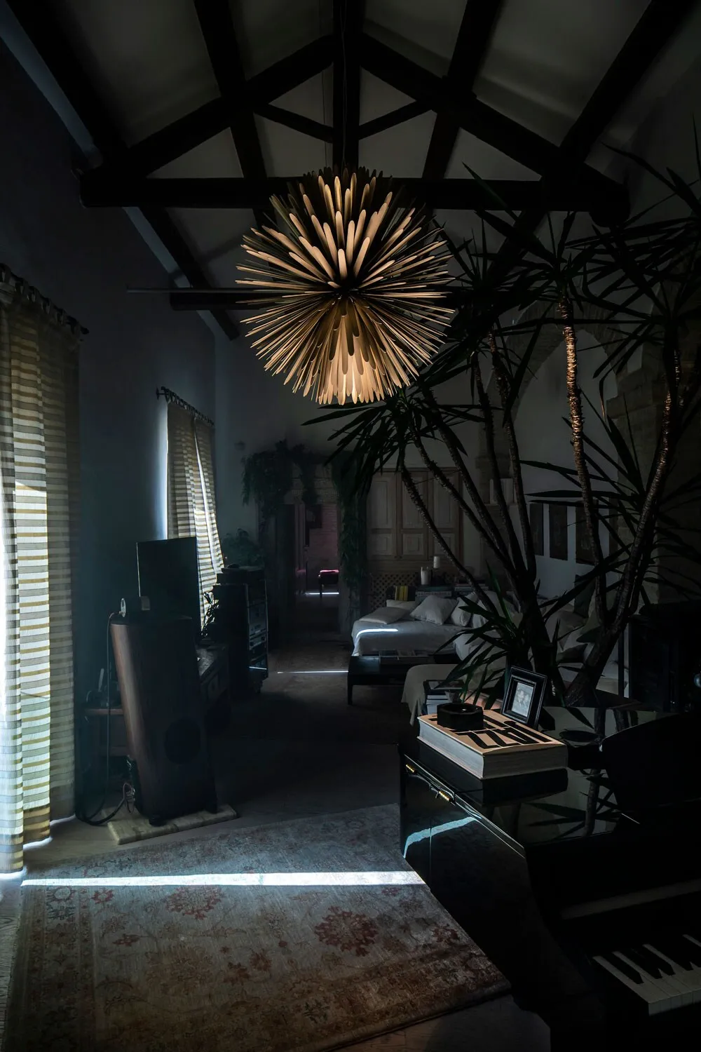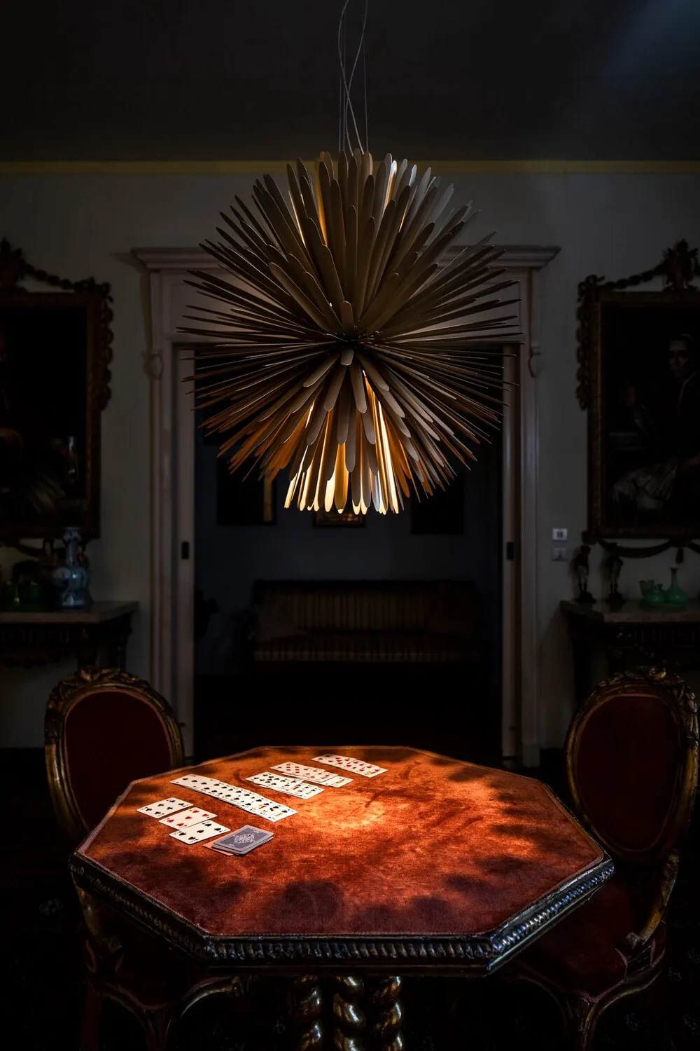 The pendant by Ferruci has a remarkable, expressive design perfect for spacious rooms with high ceilings. It has an indefinite, organic shape adding that little extra touch to the surrounding environment. It has a Charm in powder-coated metal.